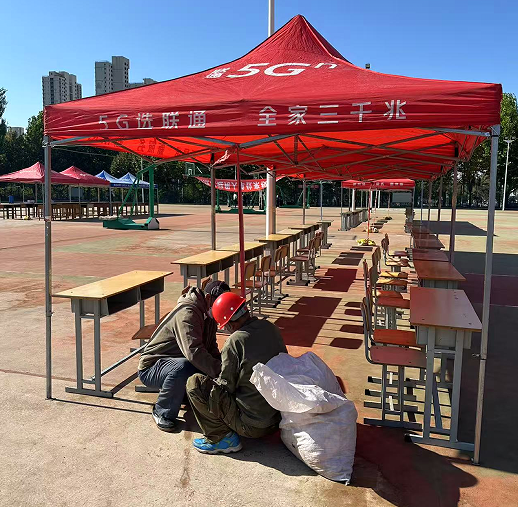 招聘会筹备阶段,秦皇岛校区物业服务部工作人员提前对会场进行全面清洁,从地面清扫到垃圾清运,不放过任何卫生死角,确保会场环境整洁明亮。根据场地规划精准定位,有序完成帐篷支架组装、篷布固定等操作,为招聘单位与学子遮挡风雨;迅速完成桌椅的搬运、定位与摆放工作,精准把控桌椅间距,既保障通行顺畅,又满足招聘洽谈的实际需求,用高效协作筑牢招聘会服务“基石”。