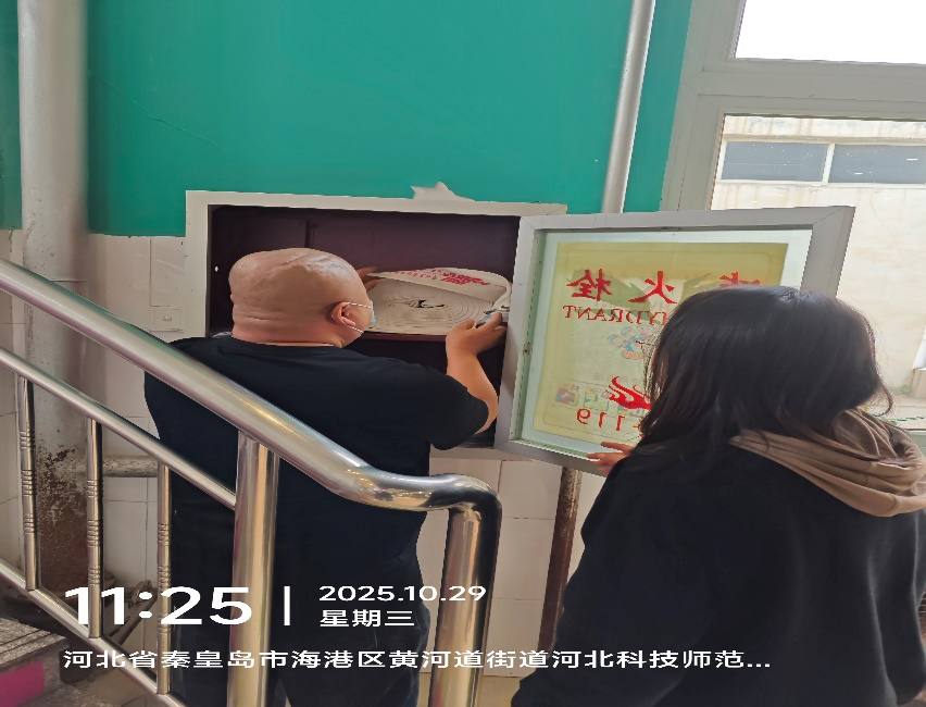 为筑牢食堂消防安全防线,消除火灾隐患,保障就餐人员生命财产安全,2025年10月29日,开发区校区餐饮服务部联合两家餐饮公司对食堂消防设施进行自查。