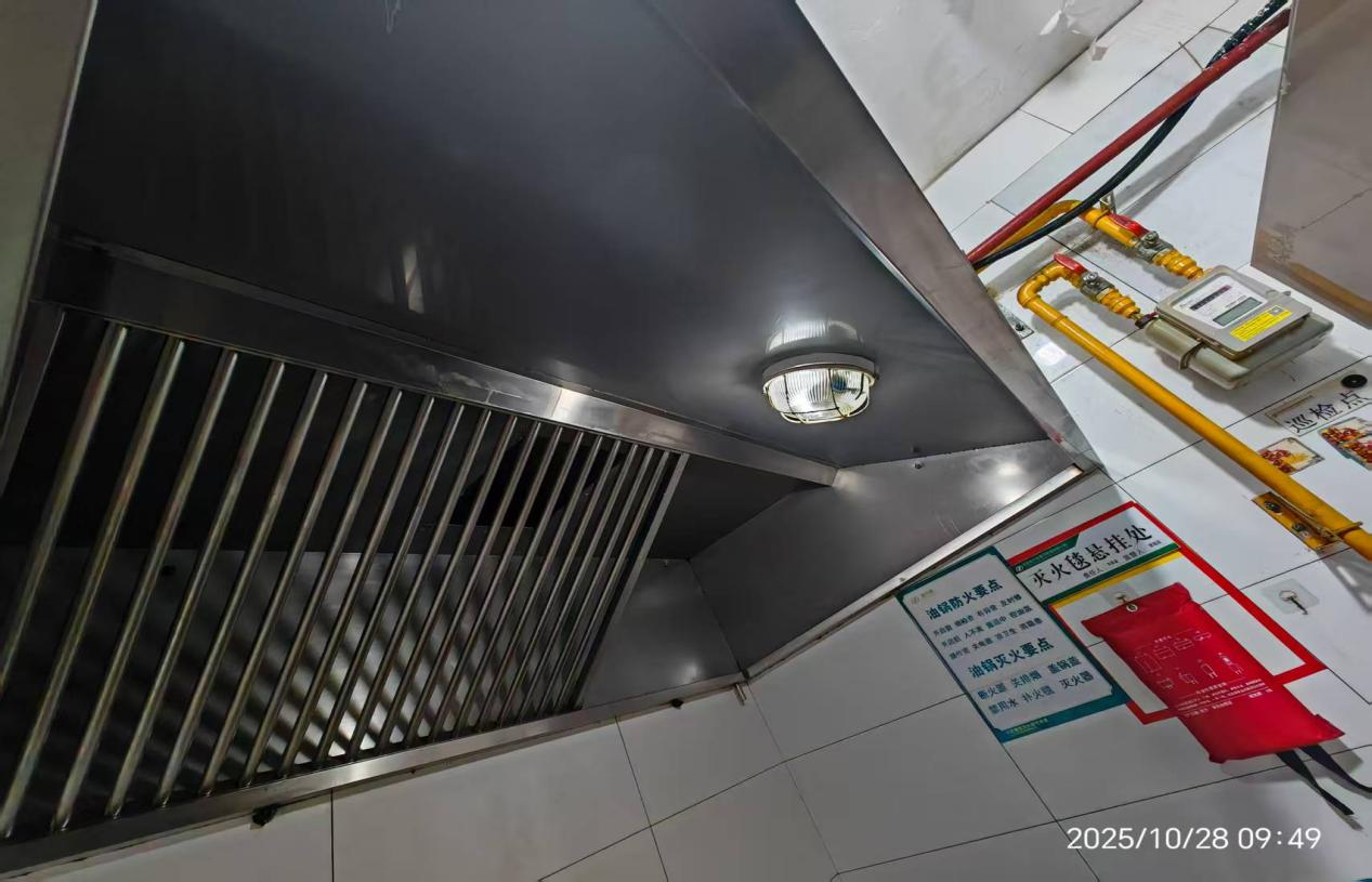 为切实保障校园师生餐饮安全,消除潜在风险隐患,筑牢食堂安全运营的“防火墙”,2025年10月28日,昌黎校区餐饮服务部联合餐饮公司进行安全自查。重点查看了用电线路是否规范、有无私拉乱接现象,杜绝超负荷用电现象;检查燃气管道、阀门、连接软管是否完好无损、有无泄漏风险;仔细查验了燃气报警器是否按规定安装并能正常联动;重点排查了消防栓、灭火器、灭火毯、应急照明灯、疏散指示标志是否配备齐全、完好有效;查看了油烟管道、油烟罩是否定期清洗,防止油垢堆积引发火灾。