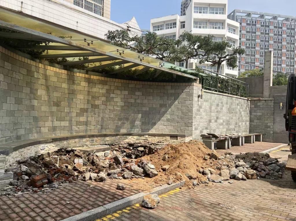 秦皇岛校区文化墙排污主管道抢修工作顺利完成