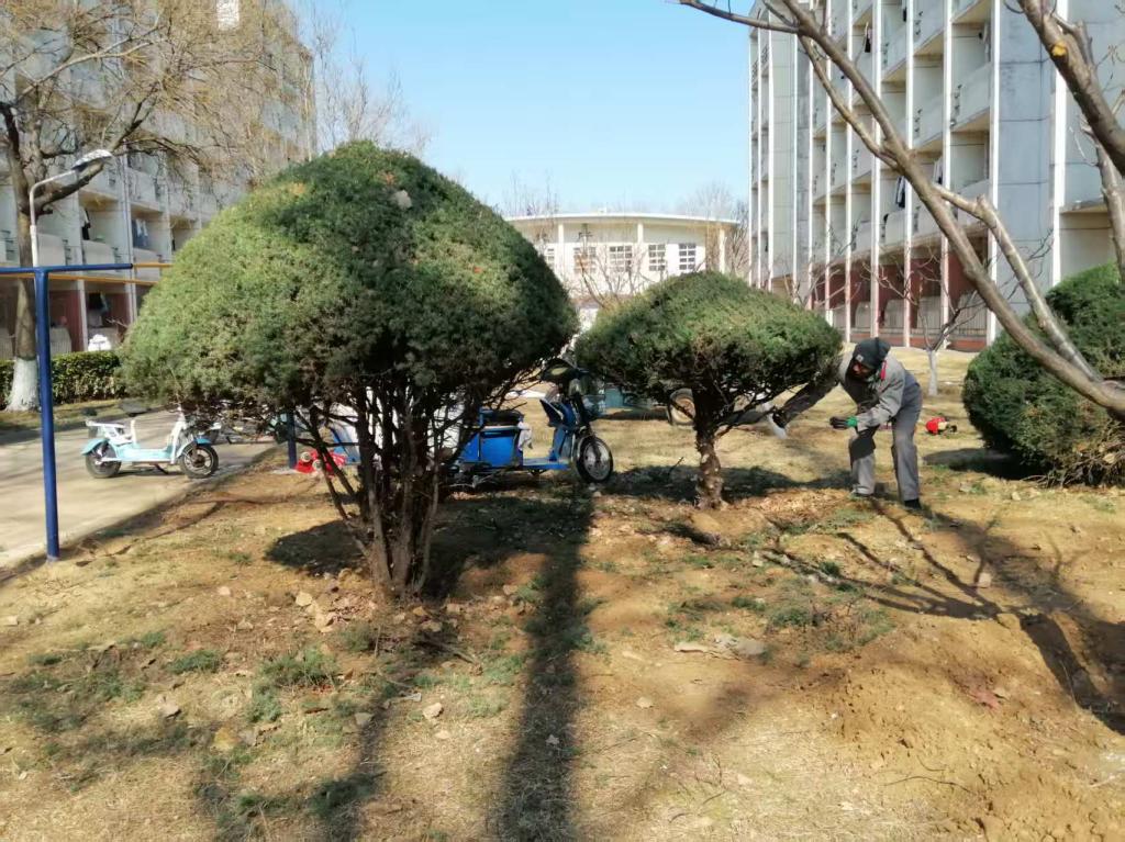 初春时节,暖意渐浓,校园内草木始抽新芽。为营造整洁、优美、宜人的校园环境,保障校园绿化景观持续焕发生机,自3月初,开发区校区物业服务部组织人员开展春季校园绿化养护专项工作,有序推进重点部位落叶清理、绿地平整、病枯枝修剪、树木整形、重点花木施肥及返青水浇灌等系列任务,为校园春绿换新颜。